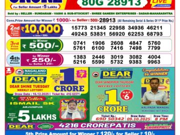 Dear Destiny Tuesday Weekly Lottery 8pm Result 30-12-25 0 Likes 3 Views Share now: XFacebookPinterestRedditVKDiggLinkedinMix Related Articles 0 7 Punjab dear 200 monthly lottery 8pm result 12-4-25 0 6 Dear stork saturday weekly lottery 8 pm result 28-6-25 0 6 Dear pelican wednesday weekly lottery 8 pm result 16-7-25 0 3 Dear Destiny Tuesday Weekly Lottery 8pm Result 16-12-25