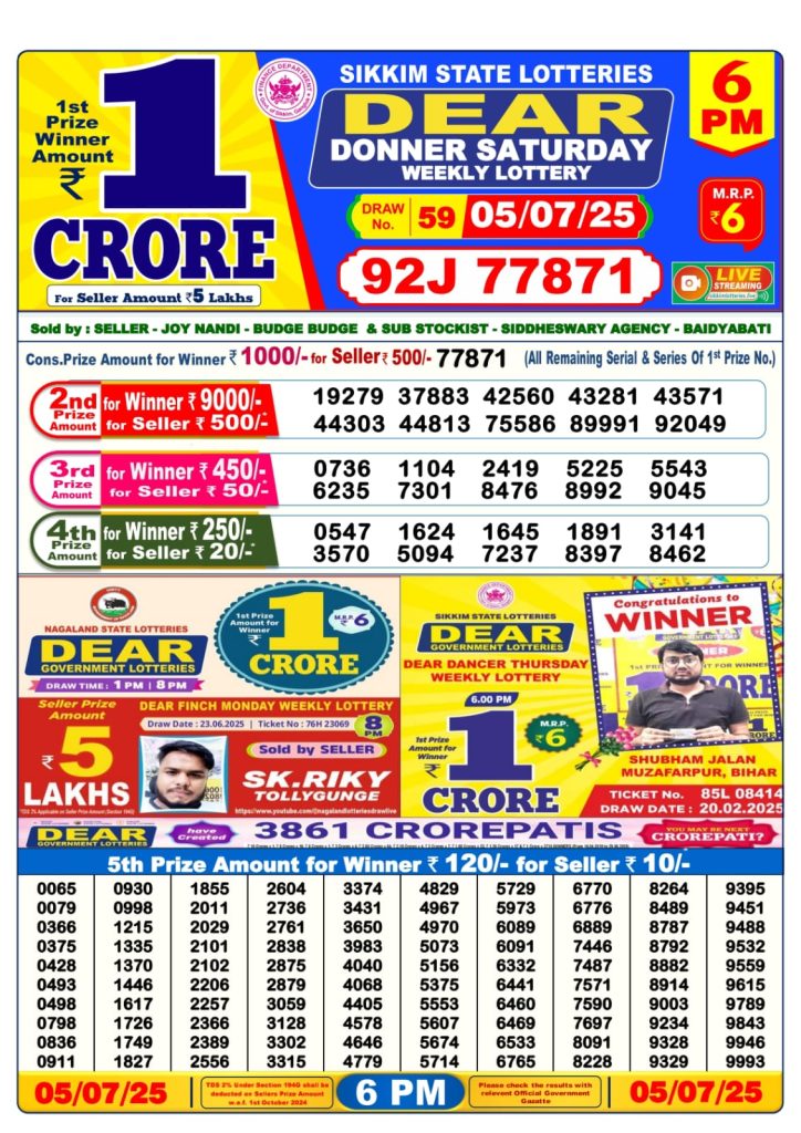 Dear donner Saturday weekly lottery 6 pm result 5-7-25 Results Editorial Staff July 5, 2025 Leave a Comment on Dear donner Saturday weekly lottery 6 pm result 5-7-25 Posted in Dear Lottery 6 PM Result Share: XFacebookPinterestRedditVKDiggLinkedinMix Dear Legend Monday Weekly Lottery Result Update 📅 Date: 05 July 2025 ⏰ Draw Time: 6:00 PM 🟢 Result Declared 🔗 View previous Dear Lottery 6 PM Result results Related Results Dear Legend Monday Weekly Lottery 6pm Result 02-03-26 Dear Empire Sunday Weekly Lottery 6pm Result 01-03-26 Dear Elite Saturday Weekly Lottery 6pm Result 28-02-26 Dear Crown Friday Weekly Lottery 6pm Result 27-02-26 Dear Supreme Thursday Weekly Lottery 6pm Result 26-02-26 Dear Regal Wednesday Weekly Lottery 6pm Result 25-02-26 Dear Prestige Tuesday Weekly Lottery 6pm Result 24-02-26 Author: Results Editorial Staff
