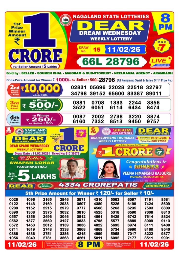 Dear Dream Wednesday Weekly Lottery 8pm Result 11-02-26