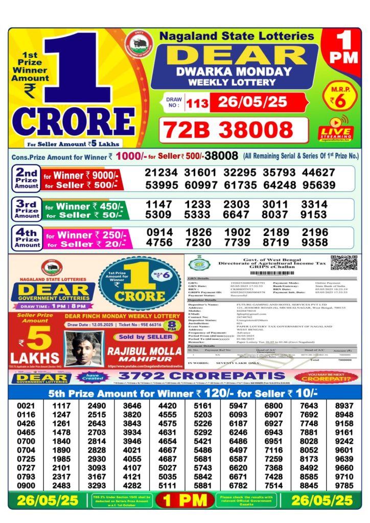 Dear dwarka monday weekly lottery 1 pm result 26-5-25 Results Editorial Staff May 26, 2025 Leave a Comment on Dear dwarka monday weekly lottery 1 pm result 26-5-25 Posted in Dear Lottery 1 PM Result Share: XFacebookPinterestRedditVKDiggLinkedinMix Dear Rise Monday Weekly Lottery Result Update 📅 Date: 26 May 2025 ⏰ Draw Time: 1:00 PM 🟢 Result Declared 🔗 View previous Dear Lottery 1 PM Result results Related Results Dear Rise Monday Weekly Lottery 1pm Result 02-03-26 Dear Wish Sunday Weekly Lottery 1pm Result 01-03-26 Dear Vision Saturday Weekly Lottery 1pm Result 28-02-26 Dear Victory Friday Weekly Lottery 1pm Result 27-02-26 Dear Star Thursday Weekly Lottery 1pm Result 26-02-26 Dear Spark Wednesday Weekly Lottery 1pm Result 25-02-26 Dear Shine Tuesday Weekly Lottery 1pm Result 24-02-26 Author: Results Editorial Staff