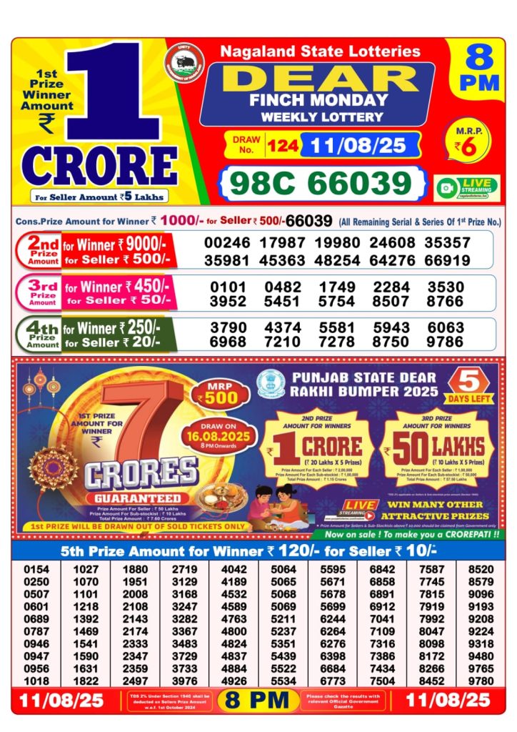 Dear Finch Monday Weekly Lottery 8 PM Result 11-08-25 wpailnadmin August 11, 2025 Leave a Comment on Dear Finch Monday Weekly Lottery 8 PM Result 11-08-25 Posted in Dear Lottery 8 PM Result Share: XFacebookPinterestRedditVKDiggLinkedinMix Dear Clover Monday Weekly Lottery Result Update 📅 Date: 11 August 2025 ⏰ Draw Time: 8:00 PM 🟢 Result Declared 🔗 View previous Dear Lottery 8 PM Result results Related Results Dear Clover Monday Weekly Lottery 8pm Result 02-03-26 Dear Magic Sunday Weekly Lottery 8pm Result 01-03-26 Dear Lucky Saturday Weekly Lottery 8pm Result 28-02-26 Dear Horizon Friday Weekly Lottery 8pm Result 27-02-26 Dear Fame Thursday Weekly Lottery 8pm Result 26-02-26 Dear Dream Wednesday Weekly Lottery 8pm Result 25-02-26 Dear Destiny Tuesday Weekly Lottery 8pm Result 24-02-26 Author: wpailnadmin Website
