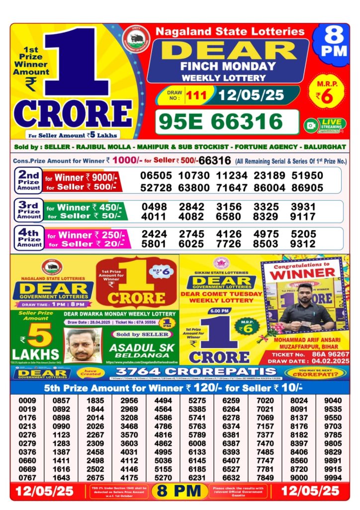 Dear finch monday weekly lottery 8 pm result 12-5-25 Results Editorial Staff May 12, 2025 Leave a Comment on Dear finch monday weekly lottery 8 pm result 12-5-25 Posted in Dear Lottery 8 PM Result Share: XFacebookPinterestRedditVKDiggLinkedinMix Dear Clover Monday Weekly Lottery Result Update 📅 Date: 12 May 2025 ⏰ Draw Time: 8:00 PM 🟢 Result Declared 🔗 View previous Dear Lottery 8 PM Result results Related Results Dear Clover Monday Weekly Lottery 8pm Result 02-03-26 Dear Magic Sunday Weekly Lottery 8pm Result 01-03-26 Dear Lucky Saturday Weekly Lottery 8pm Result 28-02-26 Dear Horizon Friday Weekly Lottery 8pm Result 27-02-26 Dear Fame Thursday Weekly Lottery 8pm Result 26-02-26 Dear Dream Wednesday Weekly Lottery 8pm Result 25-02-26 Dear Destiny Tuesday Weekly Lottery 8pm Result 24-02-26 Author: Results Editorial Staff