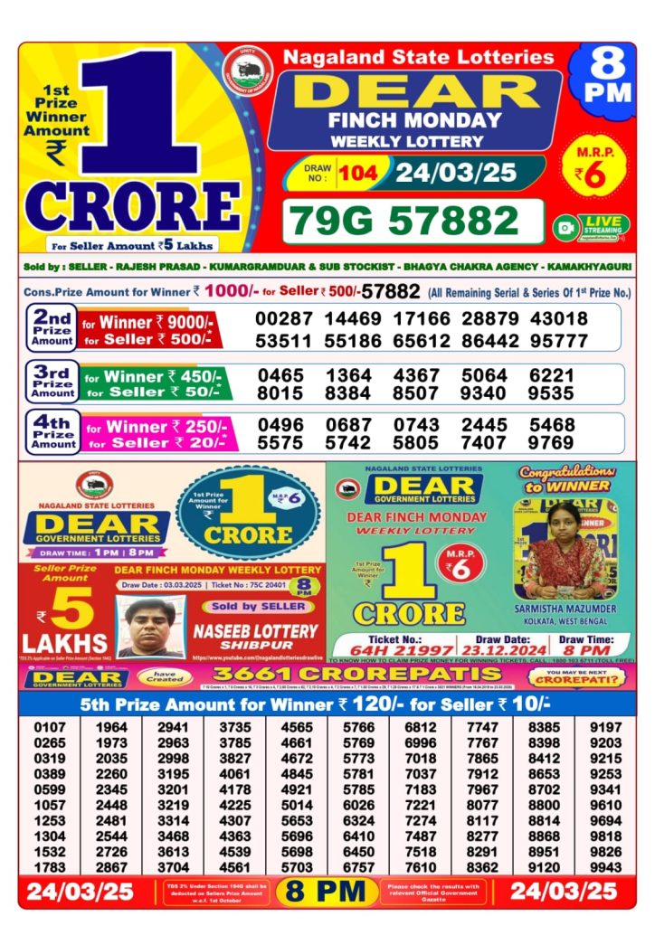 Dear finch monday weekly lottery 8 pm result 24-3-25 Results Editorial Staff March 24, 2025 Leave a Comment on Dear finch monday weekly lottery 8 pm result 24-3-25 Posted in Dear Lottery 8 PM Result Share: XFacebookPinterestRedditVKDiggLinkedinMix Dear Magic Sunday Weekly Lottery Result Update 📅 Date: 24 March 2025 ⏰ Draw Time: 8:00 PM 🟢 Result Declared 🔗 View previous Dear Lottery 8 PM Result results Related Results Dear Clover Monday Weekly Lottery 8pm Result 02-03-26 Dear Magic Sunday Weekly Lottery 8pm Result 01-03-26 Dear Lucky Saturday Weekly Lottery 8pm Result 28-02-26 Dear Horizon Friday Weekly Lottery 8pm Result 27-02-26 Dear Fame Thursday Weekly Lottery 8pm Result 26-02-26 Dear Dream Wednesday Weekly Lottery 8pm Result 25-02-26 Dear Destiny Tuesday Weekly Lottery 8pm Result 24-02-26 Author: Results Editorial Staff