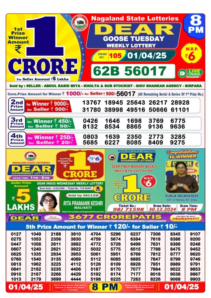 Dear goose tuesday weekly lottery 8 pm result 1/4/25 Results Editorial Staff April 1, 2025 Leave a Comment on Dear goose tuesday weekly lottery 8 pm result 1/4/25 Posted in Dear Lottery 8 PM Result Share: XFacebookPinterestRedditVKDiggLinkedinMix Dear Magic Sunday Weekly Lottery Result Update 📅 Date: 01 April 2025 ⏰ Draw Time: 8:00 PM 🟢 Result Declared 🔗 View previous Dear Lottery 8 PM Result results Related Results Dear Clover Monday Weekly Lottery 8pm Result 02-03-26 Dear Magic Sunday Weekly Lottery 8pm Result 01-03-26 Dear Lucky Saturday Weekly Lottery 8pm Result 28-02-26 Dear Horizon Friday Weekly Lottery 8pm Result 27-02-26 Dear Fame Thursday Weekly Lottery 8pm Result 26-02-26 Dear Dream Wednesday Weekly Lottery 8pm Result 25-02-26 Dear Destiny Tuesday Weekly Lottery 8pm Result 24-02-26 Author: Results Editorial Staff