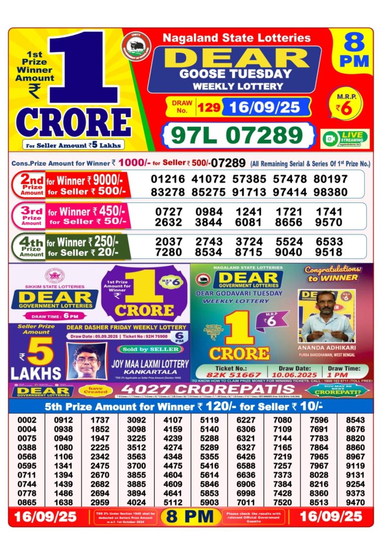 Dear Goose Tuesday Weekly Lottery 8 PM Result 16-09-25 0 Likes 2 Views Share now: XFacebookPinterestRedditVKDiggLinkedinMix Related Articles 0 3 Dear goose tuesday weekly lottery 8 pm result 15-4-25 0 4 Dear finch monday weekly lottery 8 pm result 17-3-25 0 4 Dear toucan sunday weekly lottery 8 pm result 23-3-25 0 4 Dear pelican wednesday weekly lottery 8 pm result 26-2-25
