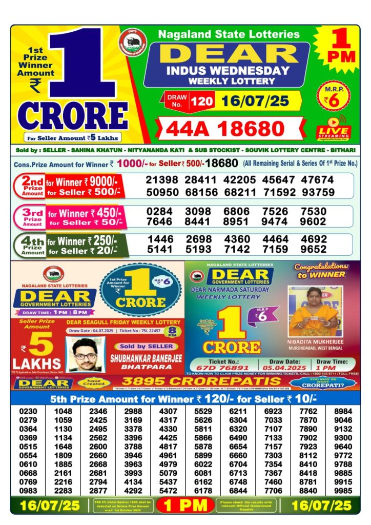 Dear indus wednesday weekly lottery 1 pm result 16-7-25 Results Editorial Staff July 16, 2025 Leave a Comment on Dear indus wednesday weekly lottery 1 pm result 16-7-25 Posted in Dear Lottery 1 PM Result Share: XFacebookPinterestRedditVKDiggLinkedinMix Dear Rise Monday Weekly Lottery Result Update 📅 Date: 16 July 2025 ⏰ Draw Time: 1:00 PM 🟢 Result Declared 🔗 View previous Dear Lottery 1 PM Result results Related Results Dear Rise Monday Weekly Lottery 1pm Result 02-03-26 Dear Wish Sunday Weekly Lottery 1pm Result 01-03-26 Dear Vision Saturday Weekly Lottery 1pm Result 28-02-26 Dear Victory Friday Weekly Lottery 1pm Result 27-02-26 Dear Star Thursday Weekly Lottery 1pm Result 26-02-26 Dear Spark Wednesday Weekly Lottery 1pm Result 25-02-26 Dear Shine Tuesday Weekly Lottery 1pm Result 24-02-26 Author: Results Editorial Staff