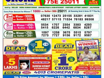 Dear Meghna Friday Weekly Lottery 1 PM Result 24-10-25 0 Likes 2 Views Share now: XFacebookPinterestRedditVKDiggLinkedinMix Related Articles 0 6 Dear yamuna sunday weekly lottery 1 pm result 25-5-25 0 5 Dear mahanadi thursday weekly lottery 1 pm result 17-7-25 0 3 Dear Godavari Tuesday Weekly Lottery 1 PM Result 09-09-25 0 5 Dear mahanadi thursday weekly lottery 1 pm result 10-7-25