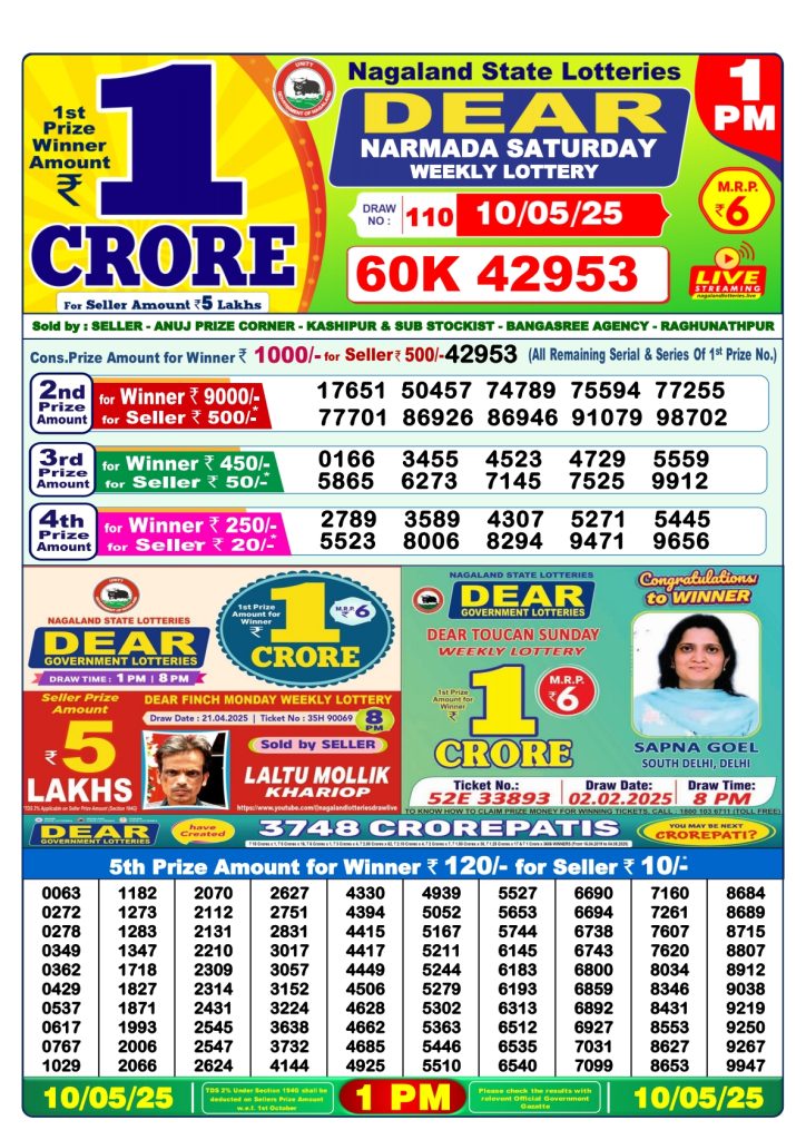Dear narmada Saturday weekly lottery 1 pm result 10-5-25 Results Editorial Staff May 10, 2025 Leave a Comment on Dear narmada Saturday weekly lottery 1 pm result 10-5-25 Posted in Dear Lottery 1 PM Result Share: XFacebookPinterestRedditVKDiggLinkedinMix Dear Rise Monday Weekly Lottery Result Update 📅 Date: 10 May 2025 ⏰ Draw Time: 1:00 PM 🟢 Result Declared 🔗 View previous Dear Lottery 1 PM Result results Related Results Dear Rise Monday Weekly Lottery 1pm Result 02-03-26 Dear Wish Sunday Weekly Lottery 1pm Result 01-03-26 Dear Vision Saturday Weekly Lottery 1pm Result 28-02-26 Dear Victory Friday Weekly Lottery 1pm Result 27-02-26 Dear Star Thursday Weekly Lottery 1pm Result 26-02-26 Dear Spark Wednesday Weekly Lottery 1pm Result 25-02-26 Dear Shine Tuesday Weekly Lottery 1pm Result 24-02-26 Author: Results Editorial Staff