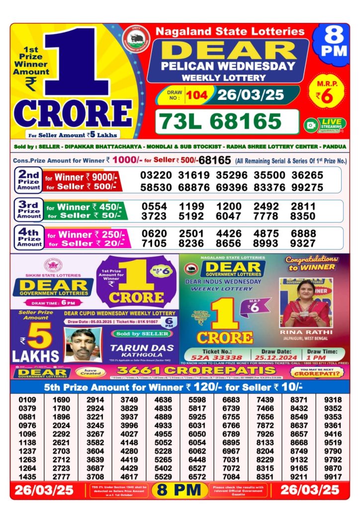 Dear pelican wednesday weekly lottery 8 pm result 26-3-25 Results Editorial Staff March 26, 2025 Leave a Comment on Dear pelican wednesday weekly lottery 8 pm result 26-3-25 Posted in Dear Lottery 8 PM Result Share: XFacebookPinterestRedditVKDiggLinkedinMix Dear Clover Monday Weekly Lottery Result Update 📅 Date: 26 March 2025 ⏰ Draw Time: 8:00 PM 🟢 Result Declared 🔗 View previous Dear Lottery 8 PM Result results Related Results Dear Clover Monday Weekly Lottery 8pm Result 02-03-26 Dear Magic Sunday Weekly Lottery 8pm Result 01-03-26 Dear Lucky Saturday Weekly Lottery 8pm Result 28-02-26 Dear Horizon Friday Weekly Lottery 8pm Result 27-02-26 Dear Fame Thursday Weekly Lottery 8pm Result 26-02-26 Dear Dream Wednesday Weekly Lottery 8pm Result 25-02-26 Dear Destiny Tuesday Weekly Lottery 8pm Result 24-02-26 Author: Results Editorial Staff