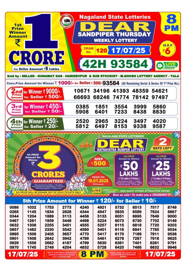 Dear sandpiper Thursday weekly lottery 8 pm result 17-7-25 Results Editorial Staff July 17, 2025 Leave a Comment on Dear sandpiper Thursday weekly lottery 8 pm result 17-7-25 Posted in Dear Lottery 8 PM Result Share: XFacebookPinterestRedditVKDiggLinkedinMix Dear Magic Sunday Weekly Lottery Result Update 📅 Date: 17 July 2025 ⏰ Draw Time: 8:00 PM 🟢 Result Declared 🔗 View previous Dear Lottery 8 PM Result results Related Results Dear Clover Monday Weekly Lottery 8pm Result 02-03-26 Dear Magic Sunday Weekly Lottery 8pm Result 01-03-26 Dear Lucky Saturday Weekly Lottery 8pm Result 28-02-26 Dear Horizon Friday Weekly Lottery 8pm Result 27-02-26 Dear Fame Thursday Weekly Lottery 8pm Result 26-02-26 Dear Dream Wednesday Weekly Lottery 8pm Result 25-02-26 Dear Destiny Tuesday Weekly Lottery 8pm Result 24-02-26 Author: Results Editorial Staff