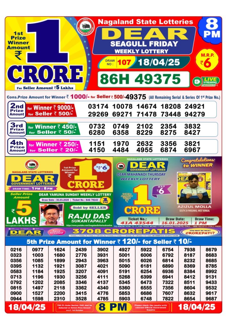 Dear seagull friday weekly lottery 8 pm result 18-4-25 Results Editorial Staff April 18, 2025 Leave a Comment on Dear seagull friday weekly lottery 8 pm result 18-4-25 Posted in Dear Lottery 8 PM Result Share: XFacebookPinterestRedditVKDiggLinkedinMix Dear Clover Monday Weekly Lottery Result Update 📅 Date: 18 April 2025 ⏰ Draw Time: 8:00 PM 🟢 Result Declared 🔗 View previous Dear Lottery 8 PM Result results Related Results Dear Clover Monday Weekly Lottery 8pm Result 02-03-26 Dear Magic Sunday Weekly Lottery 8pm Result 01-03-26 Dear Lucky Saturday Weekly Lottery 8pm Result 28-02-26 Dear Horizon Friday Weekly Lottery 8pm Result 27-02-26 Dear Fame Thursday Weekly Lottery 8pm Result 26-02-26 Dear Dream Wednesday Weekly Lottery 8pm Result 25-02-26 Dear Destiny Tuesday Weekly Lottery 8pm Result 24-02-26 Author: Results Editorial Staff
