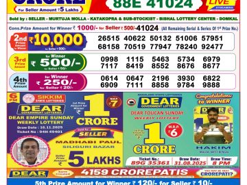 Dear seagull friday weekly lottery 8 pm result 18-4-25 0 Likes 7 Views Share now: XFacebookPinterestRedditVKDiggLinkedinMix Related Articles 0 5 Dear goose tuesday weekly lottery 8 pm result 15-4-25 0 1 Dear Lucky Saturday Weekly Lottery 8pm Result 22-11-25 0 3 Punjab State 200 Monthly Lottery Result 8pm Out 02.08.25 0 1 Dear Fame Thursday Weekly Lottery 8pm Result 20-11-25