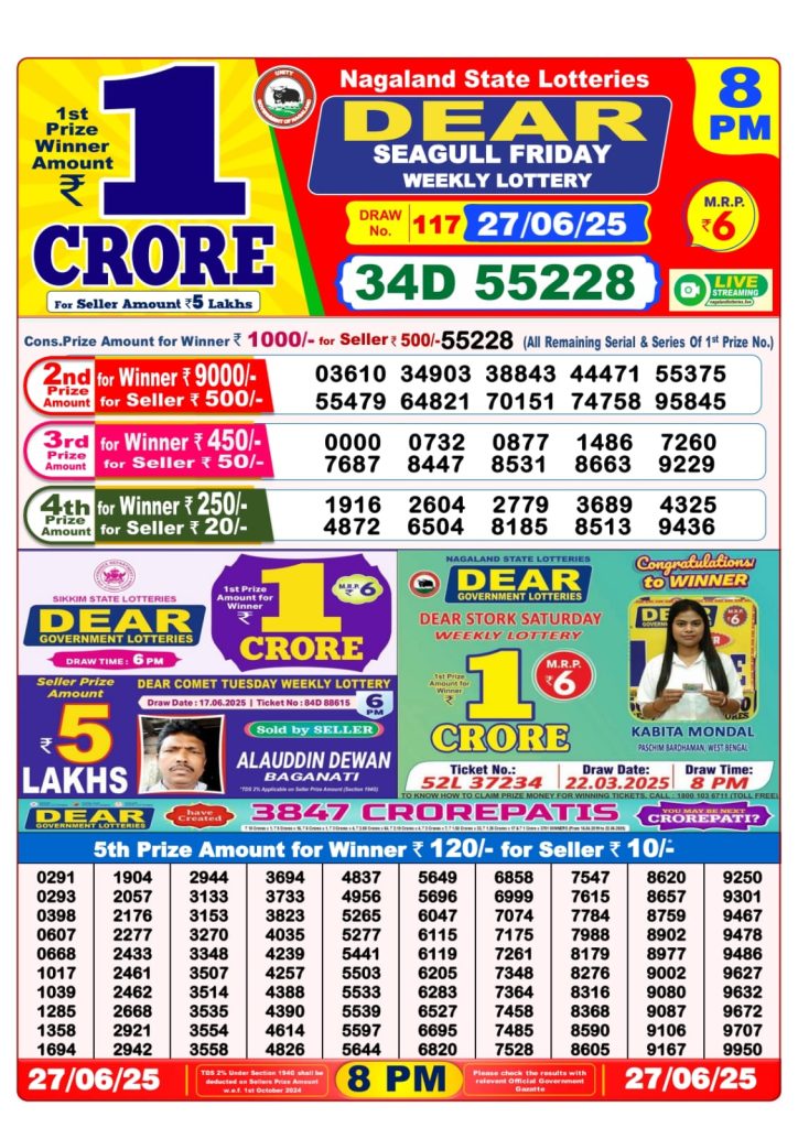 Dear seagull friday weekly lottery 8 pm result 27-6-25 Results Editorial Staff June 27, 2025 Leave a Comment on Dear seagull friday weekly lottery 8 pm result 27-6-25 Posted in Dear Lottery 8 PM Result Share: XFacebookPinterestRedditVKDiggLinkedinMix Dear Clover Monday Weekly Lottery Result Update 📅 Date: 27 June 2025 ⏰ Draw Time: 8:00 PM 🟢 Result Declared 🔗 View previous Dear Lottery 8 PM Result results Related Results Dear Clover Monday Weekly Lottery 8pm Result 02-03-26 Dear Magic Sunday Weekly Lottery 8pm Result 01-03-26 Dear Lucky Saturday Weekly Lottery 8pm Result 28-02-26 Dear Horizon Friday Weekly Lottery 8pm Result 27-02-26 Dear Fame Thursday Weekly Lottery 8pm Result 26-02-26 Dear Dream Wednesday Weekly Lottery 8pm Result 25-02-26 Dear Destiny Tuesday Weekly Lottery 8pm Result 24-02-26 Author: Results Editorial Staff