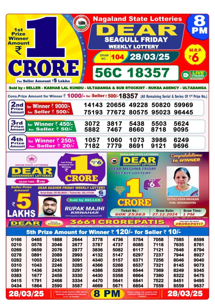 Dear seagull friday weekly lottery 8 pm result 28-3-25 Results Editorial Staff March 28, 2025 Leave a Comment on Dear seagull friday weekly lottery 8 pm result 28-3-25 Posted in Dear Lottery 8 PM Result Share: XFacebookPinterestRedditVKDiggLinkedinMix Dear Magic Sunday Weekly Lottery Result Update 📅 Date: 28 March 2025 ⏰ Draw Time: 8:00 PM 🟢 Result Declared 🔗 View previous Dear Lottery 8 PM Result results Related Results Dear Clover Monday Weekly Lottery 8pm Result 02-03-26 Dear Magic Sunday Weekly Lottery 8pm Result 01-03-26 Dear Lucky Saturday Weekly Lottery 8pm Result 28-02-26 Dear Horizon Friday Weekly Lottery 8pm Result 27-02-26 Dear Fame Thursday Weekly Lottery 8pm Result 26-02-26 Dear Dream Wednesday Weekly Lottery 8pm Result 25-02-26 Dear Destiny Tuesday Weekly Lottery 8pm Result 24-02-26 Author: Results Editorial Staff