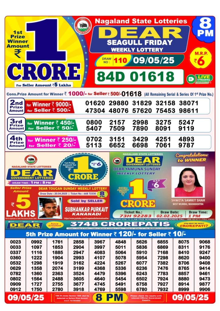 Dear seagull friday weekly lottery 8 pm result 9-5-25 Results Editorial Staff May 9, 2025 Leave a Comment on Dear seagull friday weekly lottery 8 pm result 9-5-25 Posted in Dear Lottery 8 PM Result Share: XFacebookPinterestRedditVKDiggLinkedinMix Dear Clover Monday Weekly Lottery Result Update 📅 Date: 09 May 2025 ⏰ Draw Time: 8:00 PM 🟢 Result Declared 🔗 View previous Dear Lottery 8 PM Result results Related Results Dear Clover Monday Weekly Lottery 8pm Result 02-03-26 Dear Magic Sunday Weekly Lottery 8pm Result 01-03-26 Dear Lucky Saturday Weekly Lottery 8pm Result 28-02-26 Dear Horizon Friday Weekly Lottery 8pm Result 27-02-26 Dear Fame Thursday Weekly Lottery 8pm Result 26-02-26 Dear Dream Wednesday Weekly Lottery 8pm Result 25-02-26 Dear Destiny Tuesday Weekly Lottery 8pm Result 24-02-26 Author: Results Editorial Staff