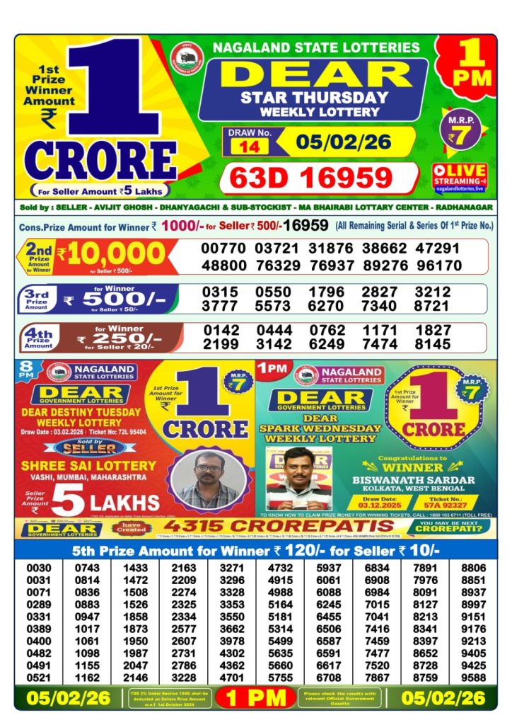 Dear Star Thursday Weekly Lottery 1pm Result 05-02-26