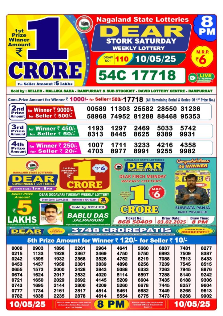 Dear stork saturday weekly lottery 8 pm result 10-5-25