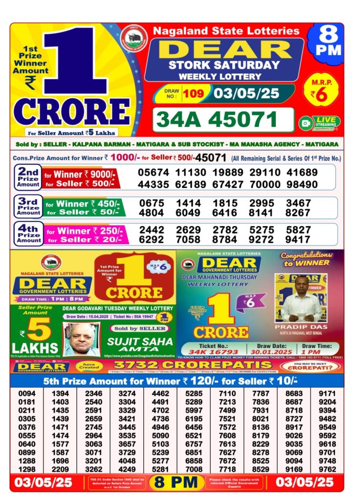 Dear stork saturday weekly lottery 8 pm result 3-5-25