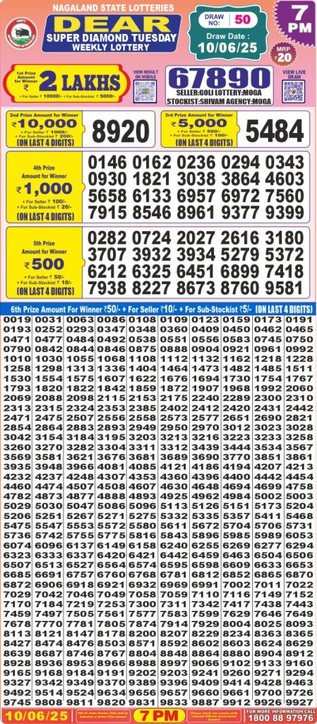 Results Editorial Staff  June 10, 2025  Leave a Comment on Dear super diamond Tuesday weekly lottery 7 pm result 10-6-25  Posted in Dear Super Lottery 7 PM Result