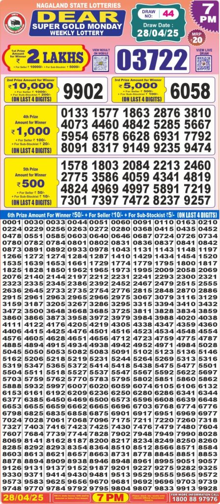 Dear super gold monday weekly lottery 7 pm result 28-4-25
