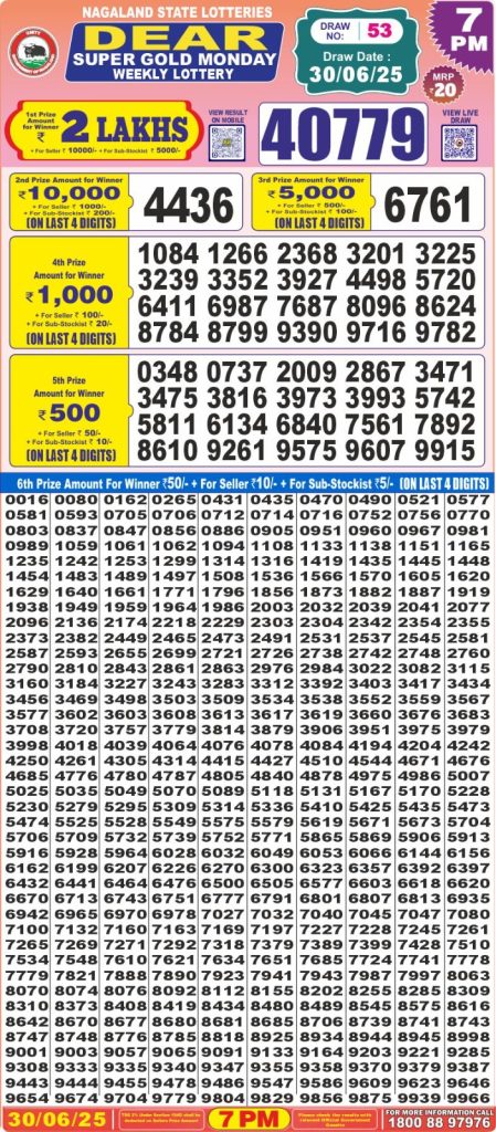 Dear super gold monday weekly lottery 7 pm result 30-6-25