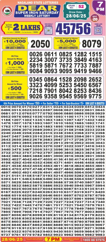 Dear super iron saturday weekly lottery 7 pm result 28-6-25 Results Editorial Staff June 28, 2025 Leave a Comment on Dear super iron saturday weekly lottery 7 pm result 28-6-25 Posted in Dear Super Lottery 7 PM Result Share: XFacebookPinterestRedditVKDiggLinkedinMix Related Results Dear Super Mercury Sunday Weekly Lottery 7 PM Result 27-07-25 Dear super iron saturday weekly lottery 7 pm result 26-7-25 Dear super silver friday weekly lottery 7 pm result 25-7-25 Dear super platinum Thursday weekly lottery 7 pm result 24-7-25 Dear super diamond Tuesday weekly lottery 7 pm result 22-7-25 Dear super gold monday weekly lottery 7 pm result 21-7-25 Dear super mercury Sunday weekly lottery 7 pm result 20-7-25 Author: Results Editorial Staff