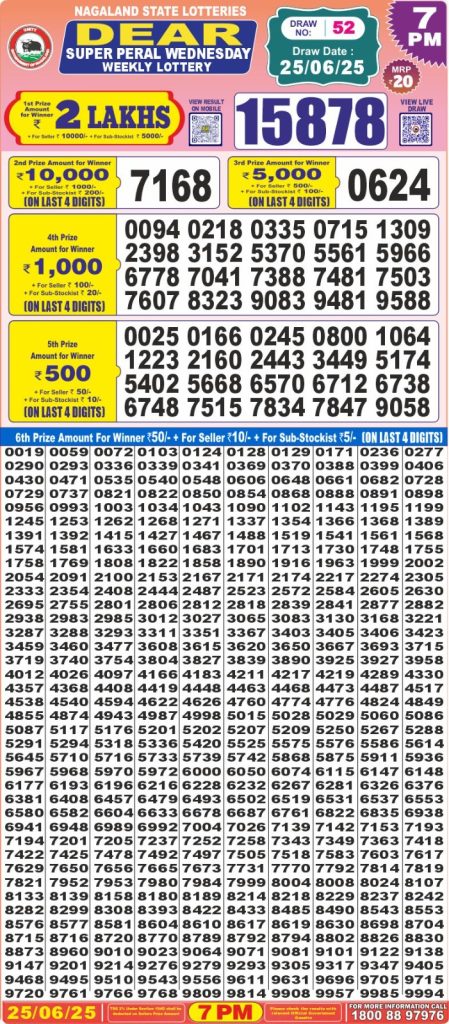 Results Editorial Staff  June 25, 2025  Leave a Comment on Dear super peral wednesday weekly lottery 7 pm result 25-6-25  Posted in Dear Super Lottery 7 PM Result