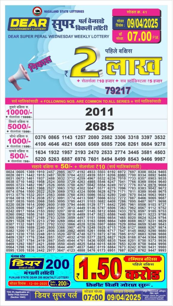 Dear super peral wednesday weekly lottery 7 pm result 9-4-25 Results Editorial Staff April 9, 2025 Leave a Comment on Dear super peral wednesday weekly lottery 7 pm result 9-4-25 Posted in Dear Super Lottery 7 PM Result Share: XFacebookPinterestRedditVKDiggLinkedinMix Related Results Dear Super Mercury Sunday Weekly Lottery 7 PM Result 27-07-25 Dear super iron saturday weekly lottery 7 pm result 26-7-25 Dear super silver friday weekly lottery 7 pm result 25-7-25 Dear super platinum Thursday weekly lottery 7 pm result 24-7-25 Dear super diamond Tuesday weekly lottery 7 pm result 22-7-25 Dear super gold monday weekly lottery 7 pm result 21-7-25 Dear super mercury Sunday weekly lottery 7 pm result 20-7-25 Author: Results Editorial Staff