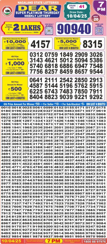 Dear super platinum Thursday weekly lottery 7 pm result 10-4-25 Results Editorial Staff April 10, 2025 Leave a Comment on Dear super platinum Thursday weekly lottery 7 pm result 10-4-25 Posted in Dear Super Lottery 7 PM Result Share: XFacebookPinterestRedditVKDiggLinkedinMix Related Results Dear Super Mercury Sunday Weekly Lottery 7 PM Result 27-07-25 Dear super iron saturday weekly lottery 7 pm result 26-7-25 Dear super silver friday weekly lottery 7 pm result 25-7-25 Dear super platinum Thursday weekly lottery 7 pm result 24-7-25 Dear super diamond Tuesday weekly lottery 7 pm result 22-7-25 Dear super gold monday weekly lottery 7 pm result 21-7-25 Dear super mercury Sunday weekly lottery 7 pm result 20-7-25 Author: Results Editorial Staff