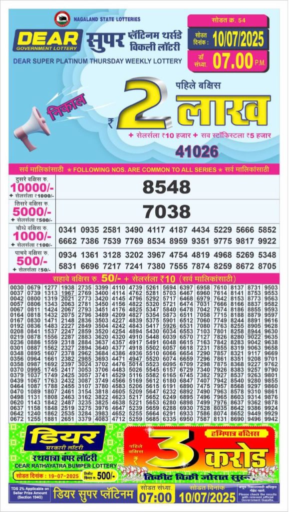 Dear super platinum Thursday weekly lottery 7 pm result 10-7-25 Results Editorial Staff July 10, 2025 Leave a Comment on Dear super platinum Thursday weekly lottery 7 pm result 10-7-25 Posted in Dear Super Lottery 7 PM Result Share: XFacebookPinterestRedditVKDiggLinkedinMix Related Results Dear Super Mercury Sunday Weekly Lottery 7 PM Result 27-07-25 Dear super iron saturday weekly lottery 7 pm result 26-7-25 Dear super silver friday weekly lottery 7 pm result 25-7-25 Dear super platinum Thursday weekly lottery 7 pm result 24-7-25 Dear super diamond Tuesday weekly lottery 7 pm result 22-7-25 Dear super gold monday weekly lottery 7 pm result 21-7-25 Dear super mercury Sunday weekly lottery 7 pm result 20-7-25 Author: Results Editorial Staff