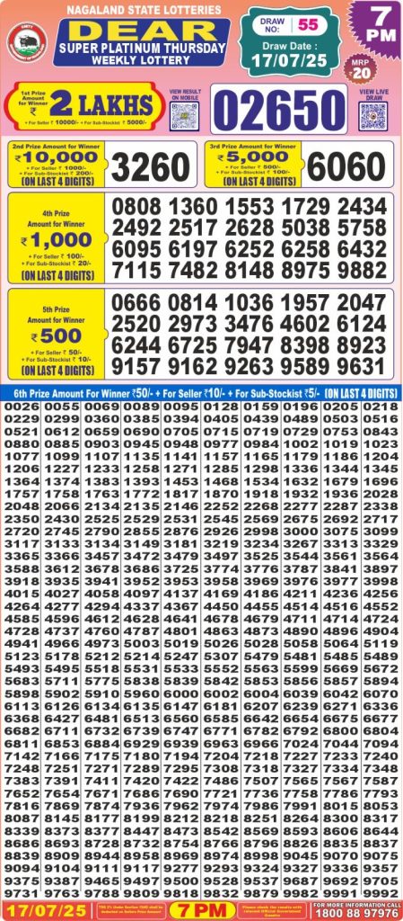 Dear super platinum Thursday weekly lottery 7 pm result 17-7-25 Results Editorial Staff July 17, 2025 Leave a Comment on Dear super platinum Thursday weekly lottery 7 pm result 17-7-25 Posted in Dear Super Lottery 7 PM Result Share: XFacebookPinterestRedditVKDiggLinkedinMix Related Results Dear Super Mercury Sunday Weekly Lottery 7 PM Result 27-07-25 Dear super iron saturday weekly lottery 7 pm result 26-7-25 Dear super silver friday weekly lottery 7 pm result 25-7-25 Dear super platinum Thursday weekly lottery 7 pm result 24-7-25 Dear super diamond Tuesday weekly lottery 7 pm result 22-7-25 Dear super gold monday weekly lottery 7 pm result 21-7-25 Dear super mercury Sunday weekly lottery 7 pm result 20-7-25 Author: Results Editorial Staff