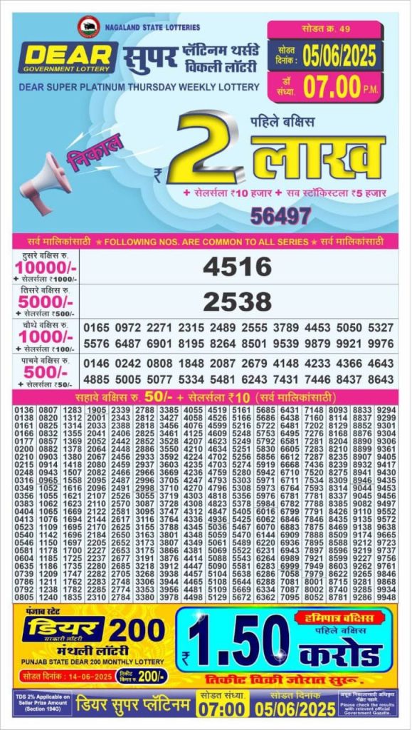 Dear super platinum Thursday weekly lottery 7 pm result 5-6-25 Results Editorial Staff June 5, 2025 Leave a Comment on Dear super platinum Thursday weekly lottery 7 pm result 5-6-25 Posted in Dear Super Lottery 7 PM Result Share: XFacebookPinterestRedditVKDiggLinkedinMix Related Results Dear Super Mercury Sunday Weekly Lottery 7 PM Result 27-07-25 Dear super iron saturday weekly lottery 7 pm result 26-7-25 Dear super silver friday weekly lottery 7 pm result 25-7-25 Dear super platinum Thursday weekly lottery 7 pm result 24-7-25 Dear super diamond Tuesday weekly lottery 7 pm result 22-7-25 Dear super gold monday weekly lottery 7 pm result 21-7-25 Dear super mercury Sunday weekly lottery 7 pm result 20-7-25 Author: Results Editorial Staff