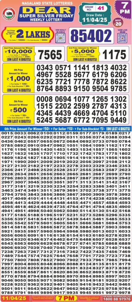 Results Editorial Staff  April 11, 2025  Leave a Comment on Dear super silver friday weekly lottery 7 pm result 11-4-25  Posted in Dear Super Lottery 7 PM Result
