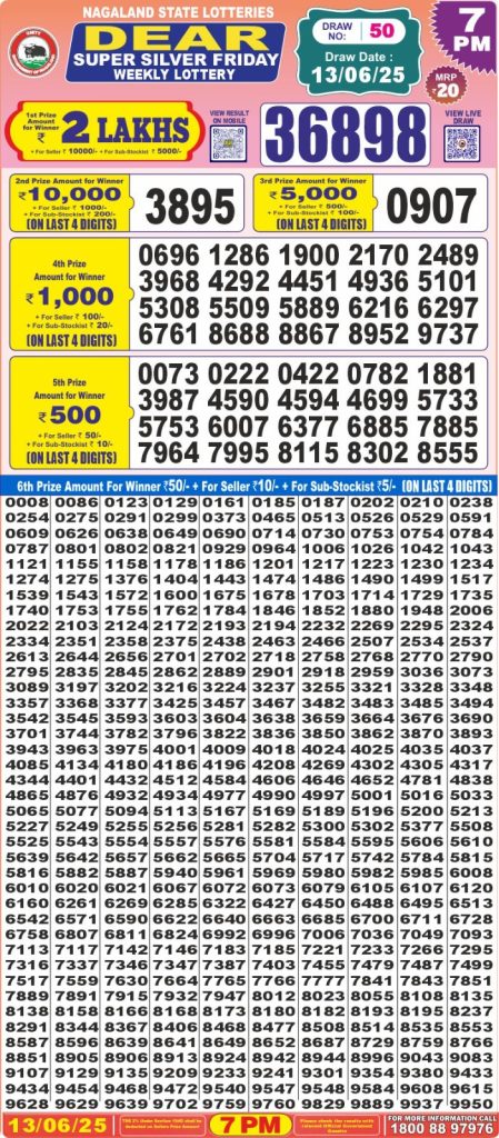 Dear super silver friday weekly lottery 7 pm result 13-6-25 Results Editorial Staff June 13, 2025 Leave a Comment on Dear super silver friday weekly lottery 7 pm result 13-6-25 Posted in Dear Super Lottery 7 PM Result Share: XFacebookPinterestRedditVKDiggLinkedinMix Related Results Dear Super Mercury Sunday Weekly Lottery 7 PM Result 27-07-25 Dear super iron saturday weekly lottery 7 pm result 26-7-25 Dear super silver friday weekly lottery 7 pm result 25-7-25 Dear super platinum Thursday weekly lottery 7 pm result 24-7-25 Dear super diamond Tuesday weekly lottery 7 pm result 22-7-25 Dear super gold monday weekly lottery 7 pm result 21-7-25 Dear super mercury Sunday weekly lottery 7 pm result 20-7-25 Author: Results Editorial Staff