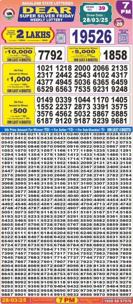 Results Editorial Staff  March 28, 2025  Leave a Comment on Dear super silver friday weekly lottery 7 pm result 28-3-25  Posted in Dear Super Lottery 7 PM Result