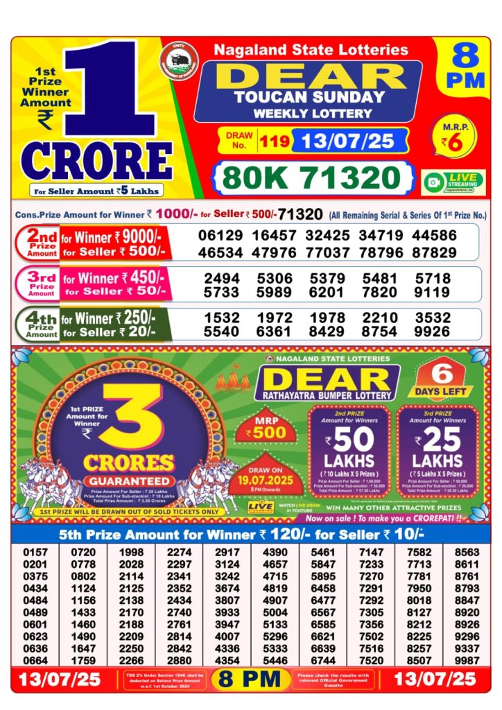 Dear toucan sunday weekly lottery 8 pm result 13-7-25 Results Editorial Staff July 13, 2025 Leave a Comment on Dear toucan sunday weekly lottery 8 pm result 13-7-25 Posted in Dear Lottery 8 PM Result Share: XFacebookPinterestRedditVKDiggLinkedinMix Dear Clover Monday Weekly Lottery Result Update 📅 Date: 13 July 2025 ⏰ Draw Time: 8:00 PM 🟢 Result Declared 🔗 View previous Dear Lottery 8 PM Result results Related Results Dear Clover Monday Weekly Lottery 8pm Result 02-03-26 Dear Magic Sunday Weekly Lottery 8pm Result 01-03-26 Dear Lucky Saturday Weekly Lottery 8pm Result 28-02-26 Dear Horizon Friday Weekly Lottery 8pm Result 27-02-26 Dear Fame Thursday Weekly Lottery 8pm Result 26-02-26 Dear Dream Wednesday Weekly Lottery 8pm Result 25-02-26 Dear Destiny Tuesday Weekly Lottery 8pm Result 24-02-26 Author: Results Editorial Staff
