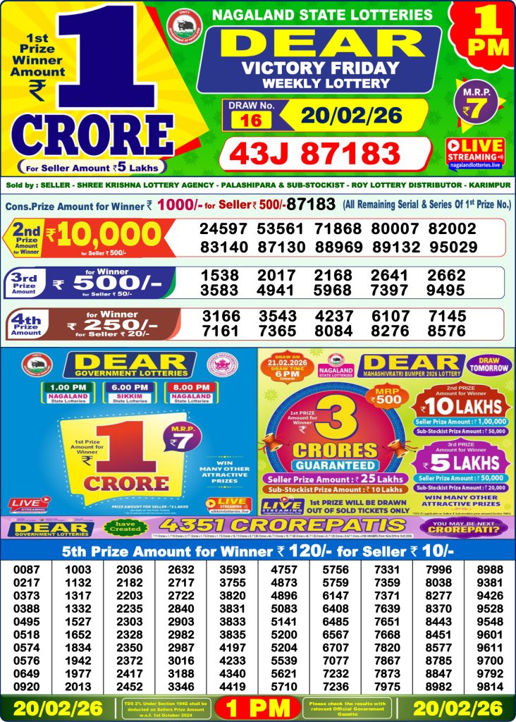 Dear Victory Friday Weekly Lottery 1pm Result 20-02-26