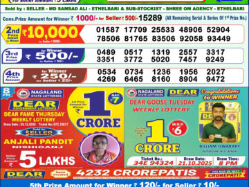 Dear Vision Saturday Weekly Lottery 1pm Result 08-11-25 0 Likes 4 Views Share now: XFacebookPinterestRedditVKDiggLinkedinMix Related Articles 0 3 Dear Victory Friday Weekly Lottery 1pm Result 26-12-25 0 8 Dear godavari tuesday weekly lottery 1 pm result 1-7-25 0 4 Dear Dwarka Monday Weekly Lottery 1 PM Result 27-10-25 0 6 Dear indus wednesday weekly lottery 1 pm result 23-7-25