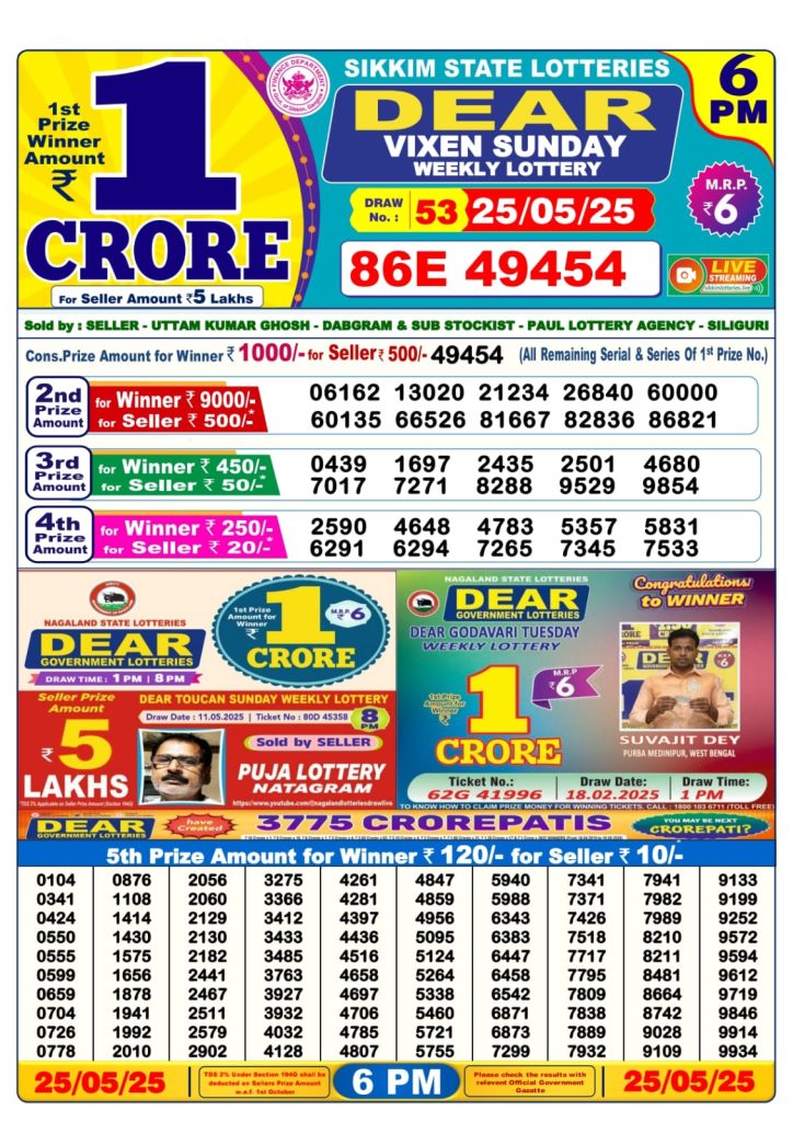 Dear vixen sunday weekly lottery 6 pm result 25-5-25 Results Editorial Staff May 25, 2025 Leave a Comment on Dear vixen sunday weekly lottery 6 pm result 25-5-25 Posted in Dear Lottery 6 PM Result Share: XFacebookPinterestRedditVKDiggLinkedinMix Dear Legend Monday Weekly Lottery Result Update 📅 Date: 25 May 2025 ⏰ Draw Time: 6:00 PM 🟢 Result Declared 🔗 View previous Dear Lottery 6 PM Result results Related Results Dear Legend Monday Weekly Lottery 6pm Result 02-03-26 Dear Empire Sunday Weekly Lottery 6pm Result 01-03-26 Dear Elite Saturday Weekly Lottery 6pm Result 28-02-26 Dear Crown Friday Weekly Lottery 6pm Result 27-02-26 Dear Supreme Thursday Weekly Lottery 6pm Result 26-02-26 Dear Regal Wednesday Weekly Lottery 6pm Result 25-02-26 Dear Prestige Tuesday Weekly Lottery 6pm Result 24-02-26 Author: Results Editorial Staff