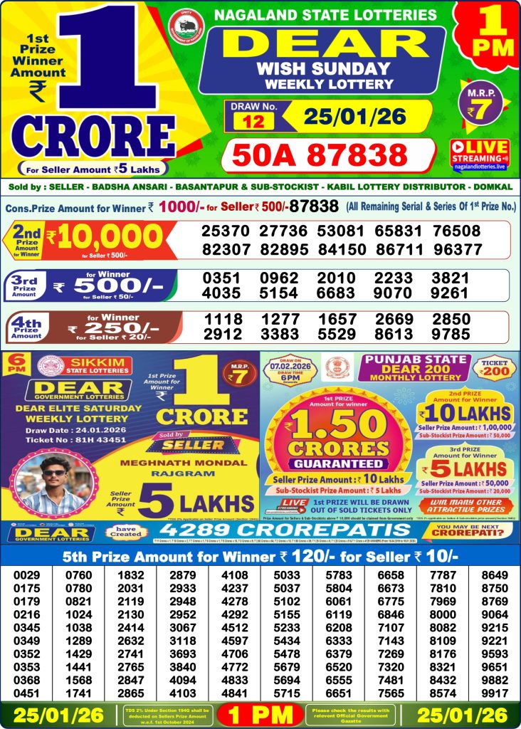 Dear Wish Sunday Weekly Lottery 1pm Result 25-01-26