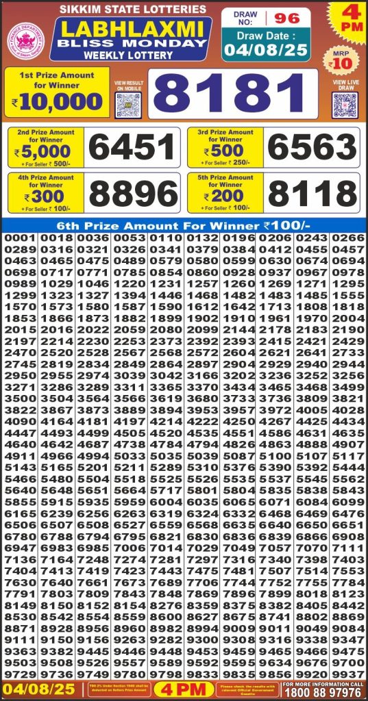 Labh Laxmi Bliss Monday Weekly Lottery 4 PM Result 04-08-25