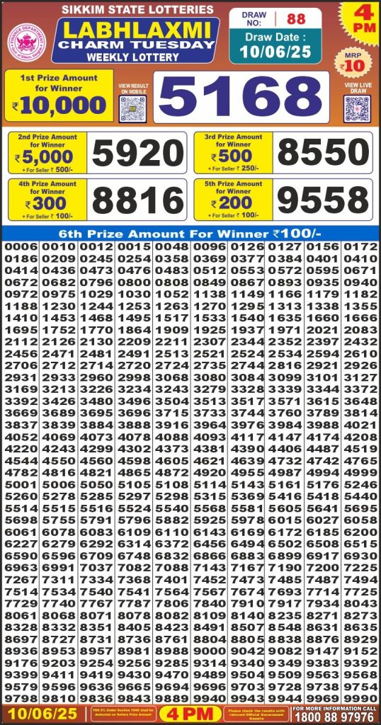 Labh Laxmi charm tuesday weekly lottery 4 pm result 10-6-25 Results Editorial Staff June 10, 2025 Leave a Comment on Labh Laxmi charm tuesday weekly lottery 4 pm result 10-6-25 Posted in Labh Laxmi Lottery 4PM Result Share: XFacebookPinterestRedditVKDiggLinkedinMix Labh Laxmi Bliss Monday 4PM Lottery Result Update 📅 Date: 10 June 2025 ⏰ Draw Time: 4:00 PM 🟢 Result Declared 🔗 View previous Labh Laxmi Lottery 4PM Result results Related Results Labh Laxmi Bliss Monday Weekly Lottery 4pm Result 02-03-26 Labh Laxmi Power Sunday Weekly Lottery 4pm Result 01-03-26 Labh Laxmi Joy Saturday Weekly Lottery 4pm Result 28-02-26 Labh Laxmi Glow Friday Weekly Lottery 4pm Result 27-02-26 Labh Laxmi Glad Thursday Weekly Lottery 4pm Result 26-02-26 Labh Laxmi Delight Wednesday Weekly Lottery 4pm Result 25-02-26 Labh Laxmi Charm Tuesday Weekly Lottery 4pm Result 24-02-26 Author: Results Editorial Staff
