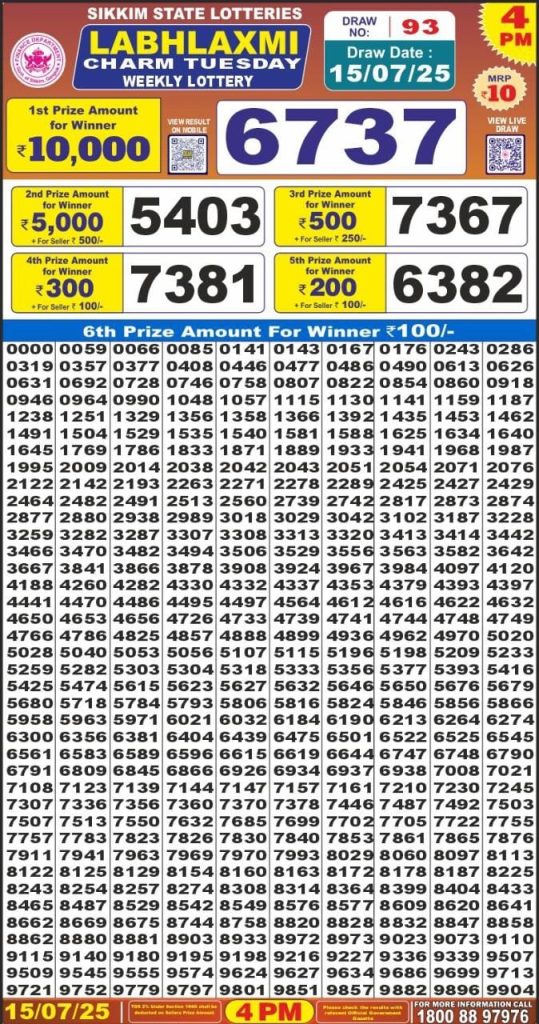 Labh Laxmi charm tuesday weekly lottery 4 pm result 15-7-25 Results Editorial Staff July 15, 2025 Leave a Comment on Labh Laxmi charm tuesday weekly lottery 4 pm result 15-7-25 Posted in Labh Laxmi Lottery 4PM Result Share: XFacebookPinterestRedditVKDiggLinkedinMix Labh Laxmi Power Sunday 4PM Lottery Result Update 📅 Date: 15 July 2025 ⏰ Draw Time: 4:00 PM 🟢 Result Declared 🔗 View previous Labh Laxmi Lottery 4PM Result results Related Results Labh Laxmi Bliss Monday Weekly Lottery 4pm Result 02-03-26 Labh Laxmi Power Sunday Weekly Lottery 4pm Result 01-03-26 Labh Laxmi Joy Saturday Weekly Lottery 4pm Result 28-02-26 Labh Laxmi Glow Friday Weekly Lottery 4pm Result 27-02-26 Labh Laxmi Glad Thursday Weekly Lottery 4pm Result 26-02-26 Labh Laxmi Delight Wednesday Weekly Lottery 4pm Result 25-02-26 Labh Laxmi Charm Tuesday Weekly Lottery 4pm Result 24-02-26 Author: Results Editorial Staff