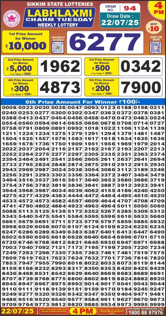 Labh Laxmi charm tuesday weekly lottery 4 pm result 22-7-25 Results Editorial Staff July 22, 2025 Leave a Comment on Labh Laxmi charm tuesday weekly lottery 4 pm result 22-7-25 Posted in Labh Laxmi Lottery 4PM Result Share: XFacebookPinterestRedditVKDiggLinkedinMix Labh Laxmi Power Sunday 4PM Lottery Result Update 📅 Date: 22 July 2025 ⏰ Draw Time: 4:00 PM 🟢 Result Declared 🔗 View previous Labh Laxmi Lottery 4PM Result results Related Results Labh Laxmi Bliss Monday Weekly Lottery 4pm Result 02-03-26 Labh Laxmi Power Sunday Weekly Lottery 4pm Result 01-03-26 Labh Laxmi Joy Saturday Weekly Lottery 4pm Result 28-02-26 Labh Laxmi Glow Friday Weekly Lottery 4pm Result 27-02-26 Labh Laxmi Glad Thursday Weekly Lottery 4pm Result 26-02-26 Labh Laxmi Delight Wednesday Weekly Lottery 4pm Result 25-02-26 Labh Laxmi Charm Tuesday Weekly Lottery 4pm Result 24-02-26 Author: Results Editorial Staff