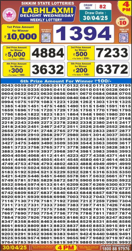 Labh Laxmi delight wednesday weekly lottery 4 pm result 30-4-25
