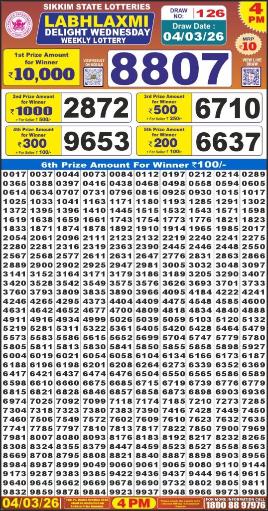 Labh Laxmi Power Sunday 4PM Lottery Result Update