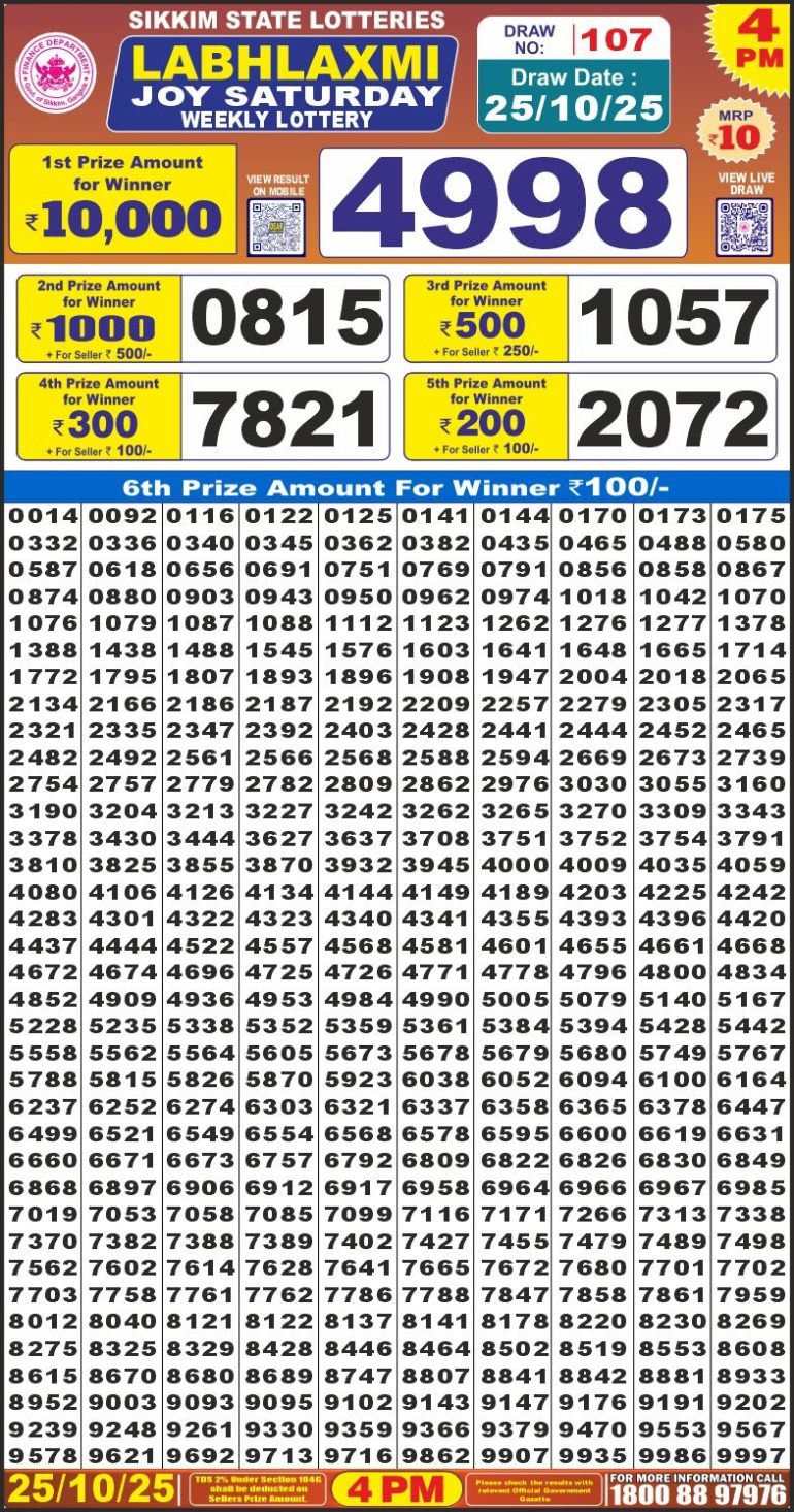 Labh Laxmi Joy Saturday Weekly Lottery 4 PM Result 25-10-25 0 Likes 2 Views Share now: XFacebookPinterestRedditVKDiggLinkedinMix Related Articles 0 6 Labhlaxmi power sunday weekly lottery 4 pm result 25-5-25 0 2 Labhlaxmi Glad Thursday Weekly Lottery 4 PM Result 07-08-25 0 3 Labhlaxmi Power Sunday Weekly Lottery 4 PM Result 03-08-25 0 4 Labhlaxmi glad Thursday weekly lottery 4 pm result 10-7-25