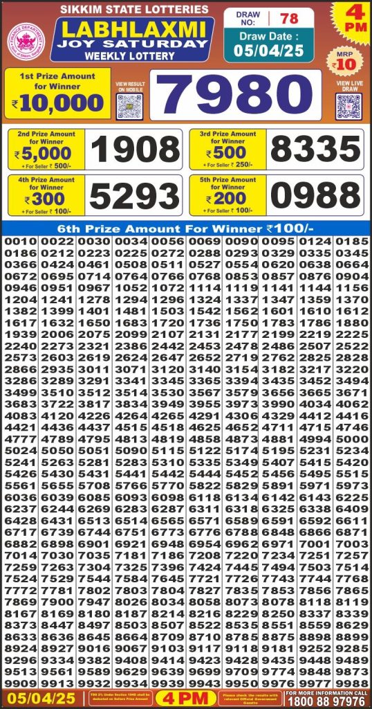 Labh Laxmi joy saturday weekly lottery 4 pm result 5-3-25