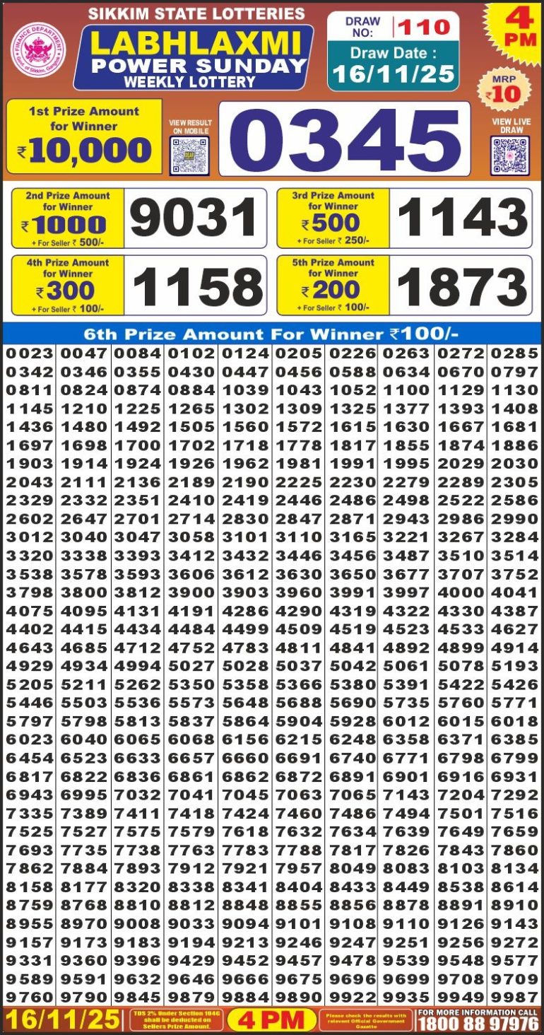 Labh Laxmi Power Sunday Weekly Lottery 4pm Result 16-11-25 0 Likes 2 Views Share now: XFacebookPinterestRedditVKDiggLinkedinMix Related Articles 0 7 Labh Laxmi joy saturday weekly lottery 4 pm result 19-7-25 0 5 Labhlaxmi glad Thursday weekly lottery 4 pm result 1-5-25 0 4 Labh Laxmi joy saturday weekly lottery 4 pm result 31-5-25 0 5 Labh Laxmi bliss monday weekly lottery 4 pm result 16-6-25