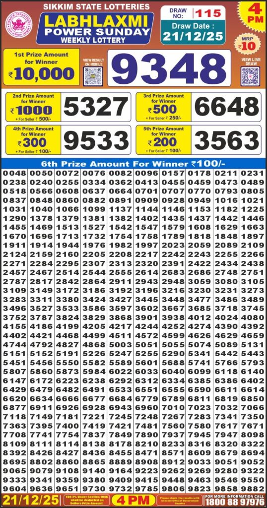 Labh Laxmi Power Sunday 4PM Lottery Result Update